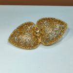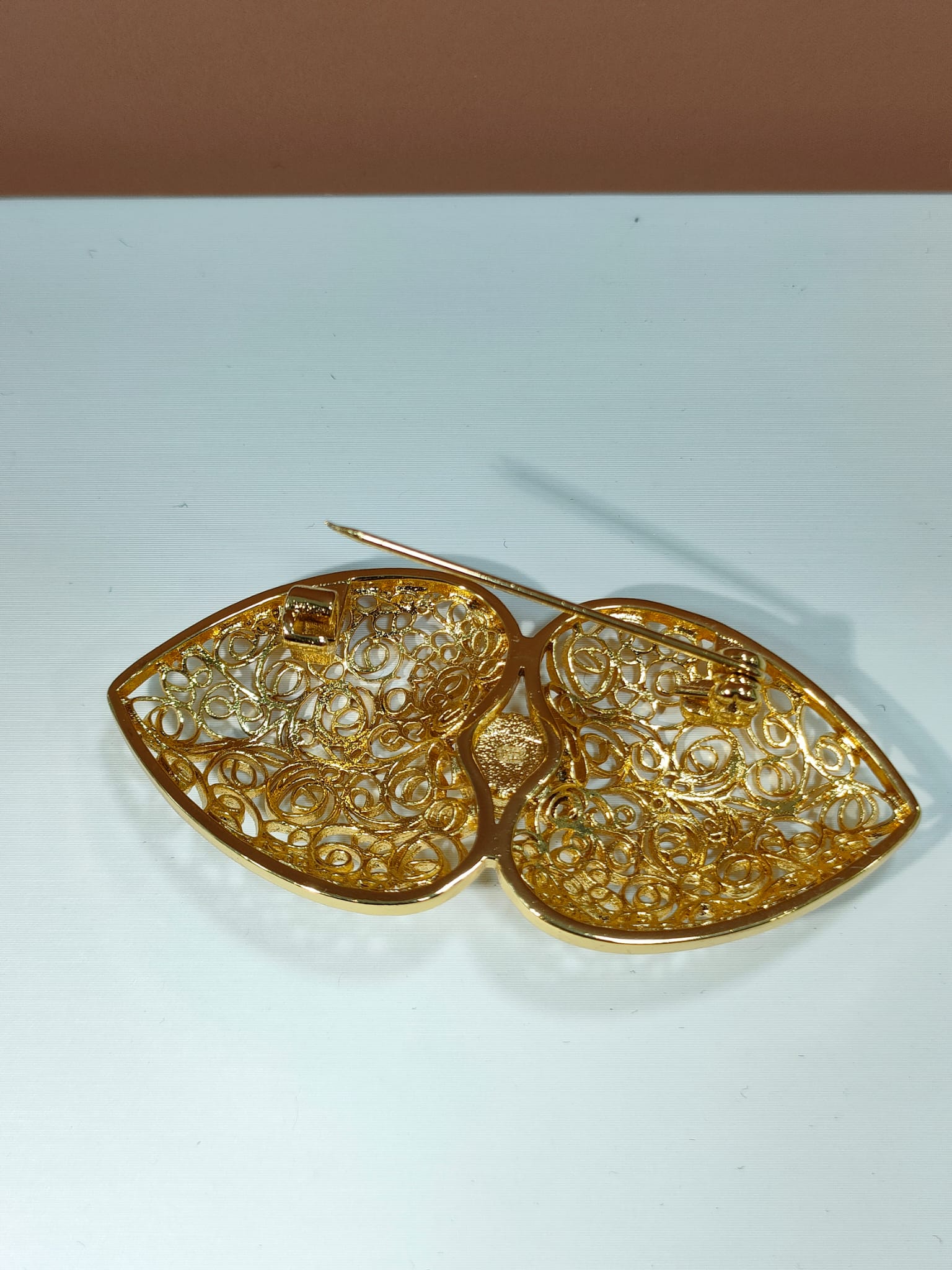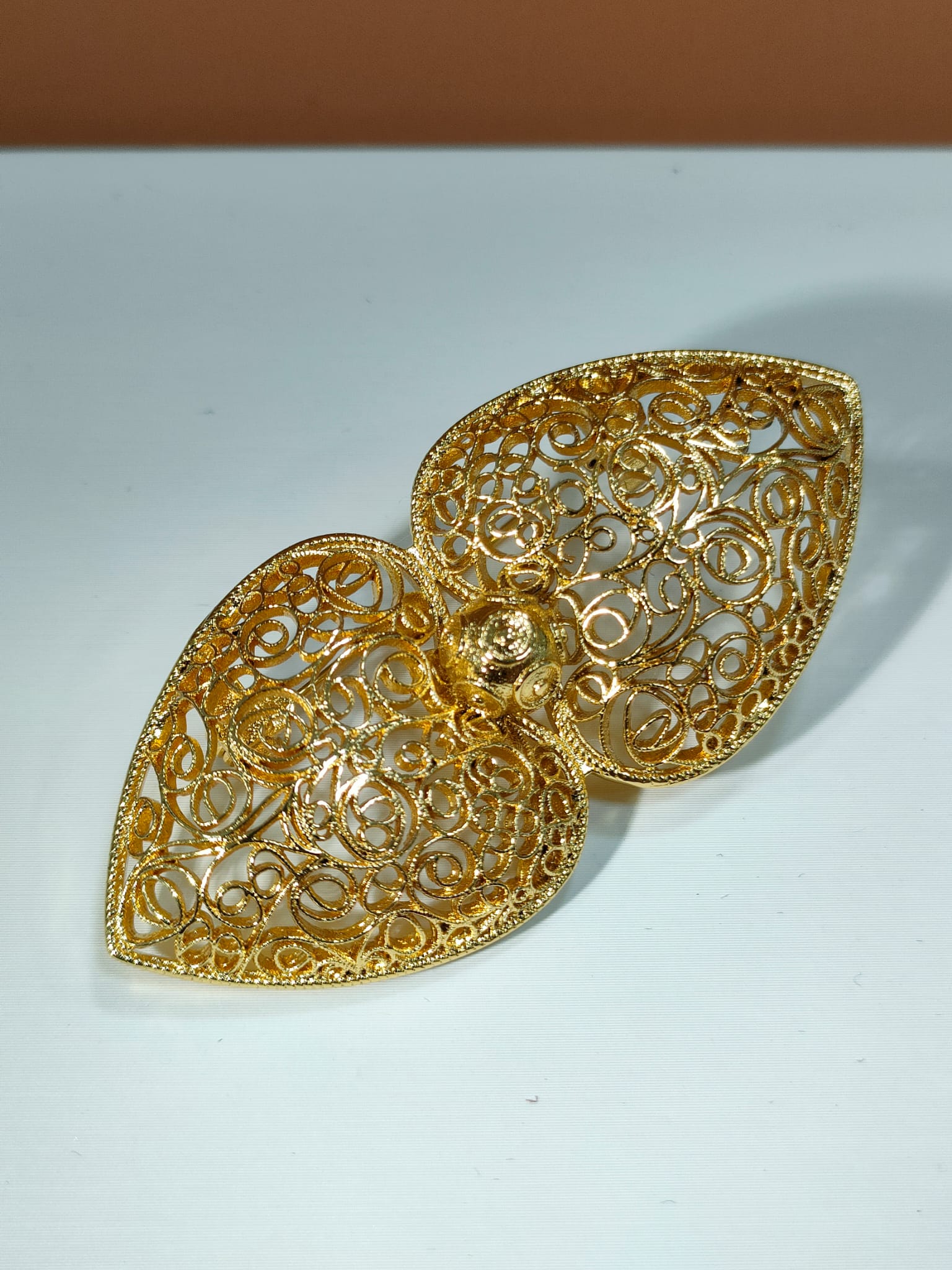 Lindíssimo alfinete de peito decorativo. Dessa forma, este alfinete de peito tem um lindíssimo estilo filigrana com o pormenor de pérolas. Uma verdadeira atração com um desenho moderno!