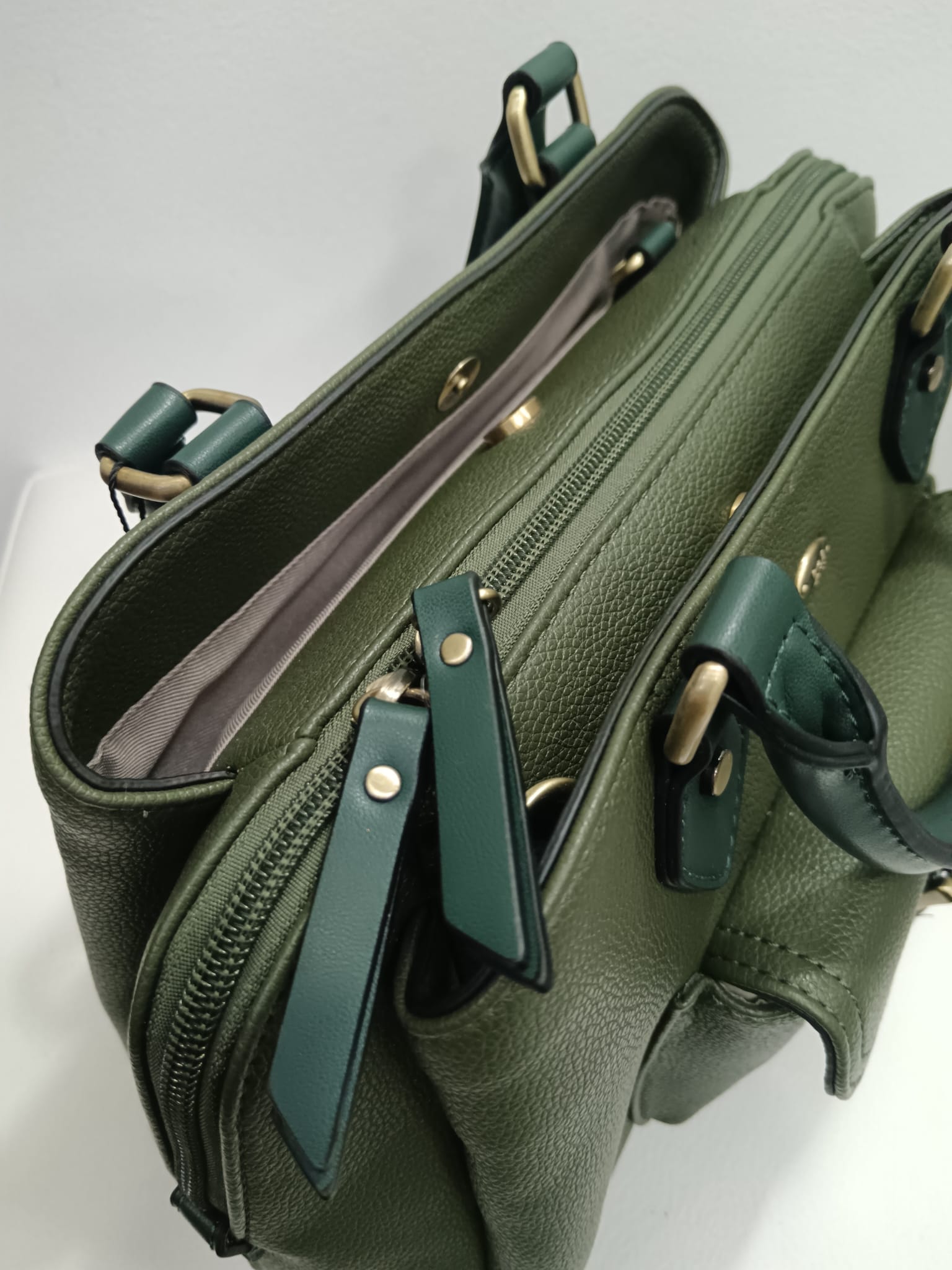 compartimento principal com zíper + 2 bolsos adicionais com fecho magnético.