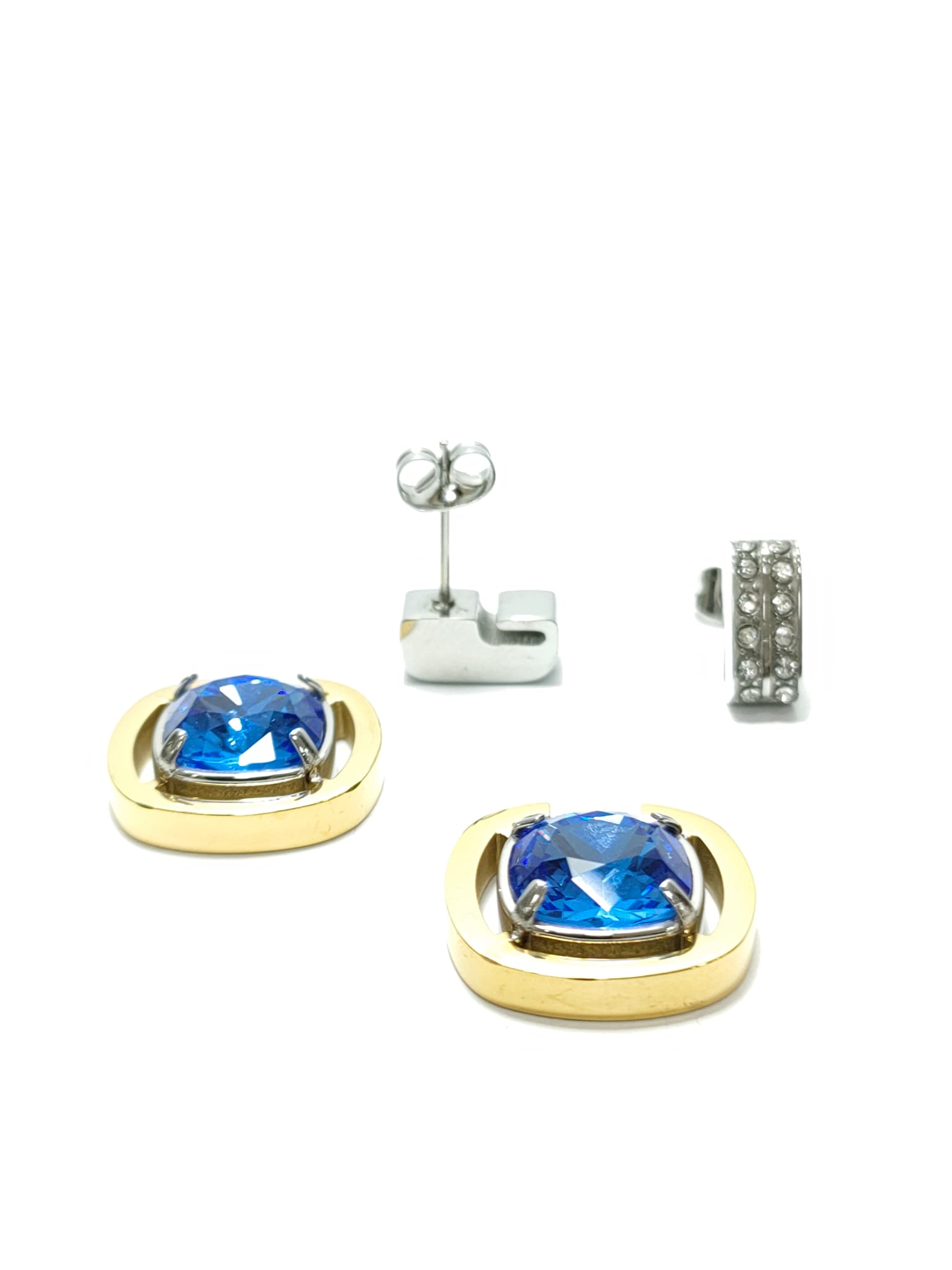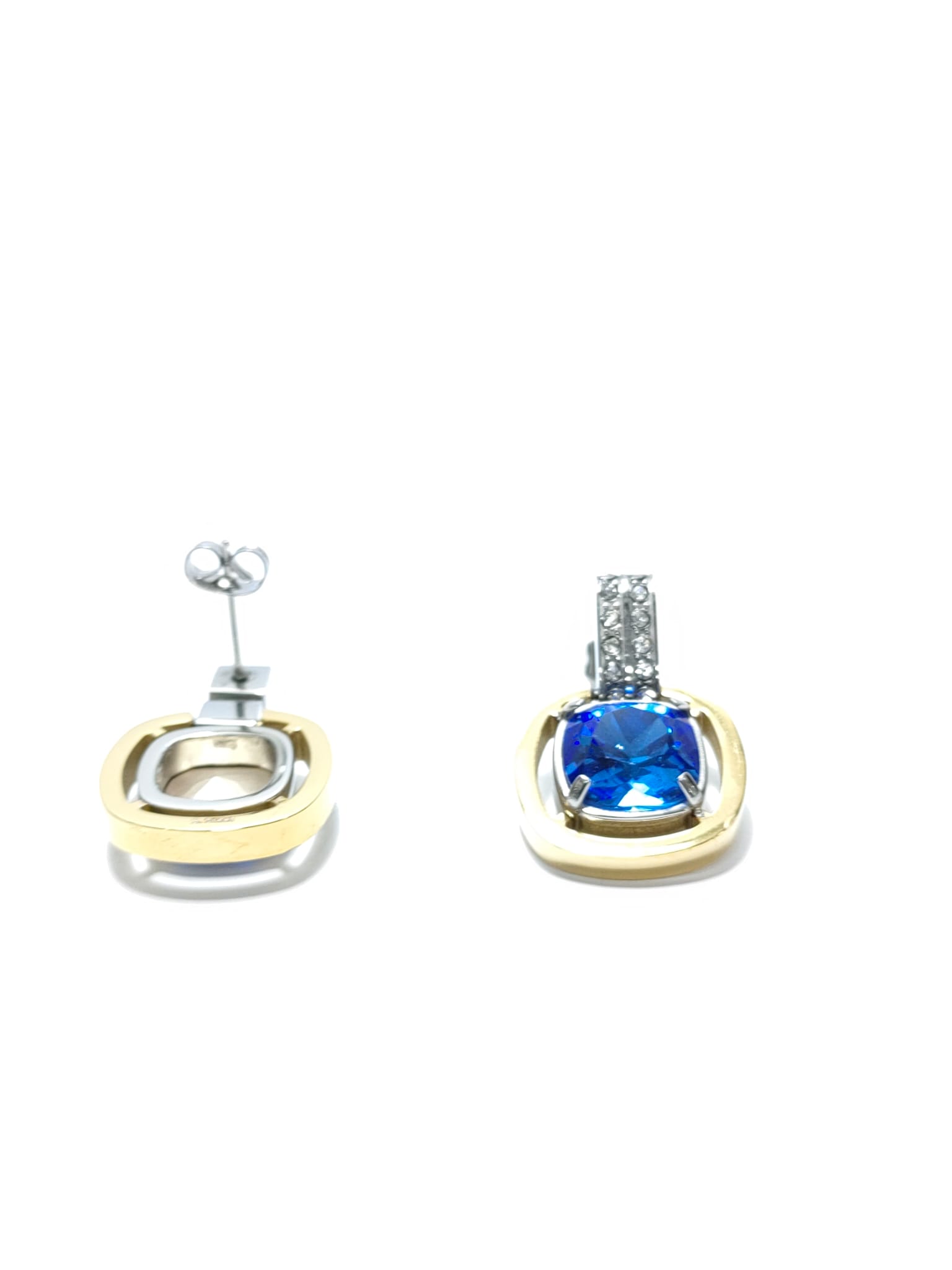 BRINCOS AÇO C/ PINGENTE ZIRCONITA AZUL REMOVIVÉL