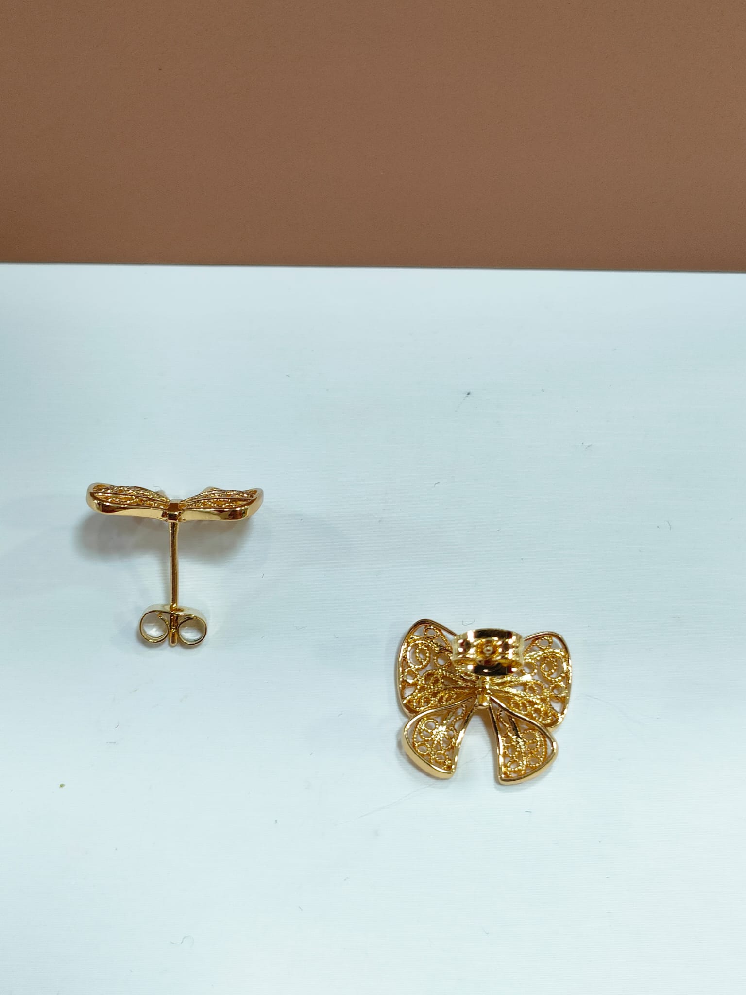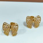Brincos com design de laço em aço com banho de ouro, símbolo de elegância e requinte.