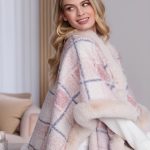 Mantenha-se estilosa e aquecida com nosso aconchegante xale xadrez, com silhueta relaxada e forro e acabamento em pele sintética para maior conforto e luxo. Perfeito para usar em camadas, este xale de tamanho único complementa qualquer look com seus tons suaves e charmosos. Eleve seu guarda-roupa de inverno sem esforço com este acessório versátil e chique.