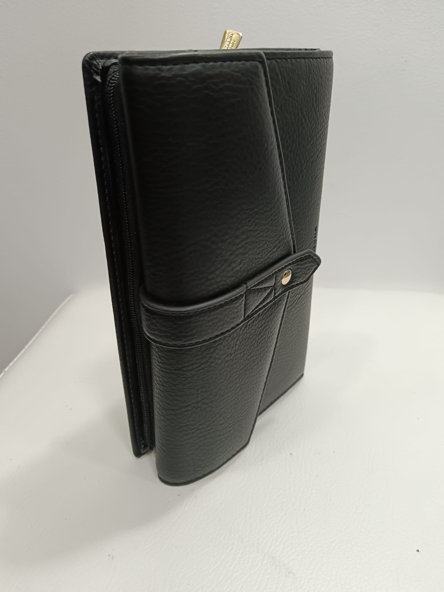 • Detalhes: compatível com cartões de crédito, CNI, carta de condução, passaporte, cartão cinzento e cheque. 1 x persiana 1 compartimento principal. 1 porta-moedas com fecho de correr. 6 bolsos planos (2 com vista transparente). 16 ranhuras para cartões. 1 bolso para notas. 1 caixa para cheques.