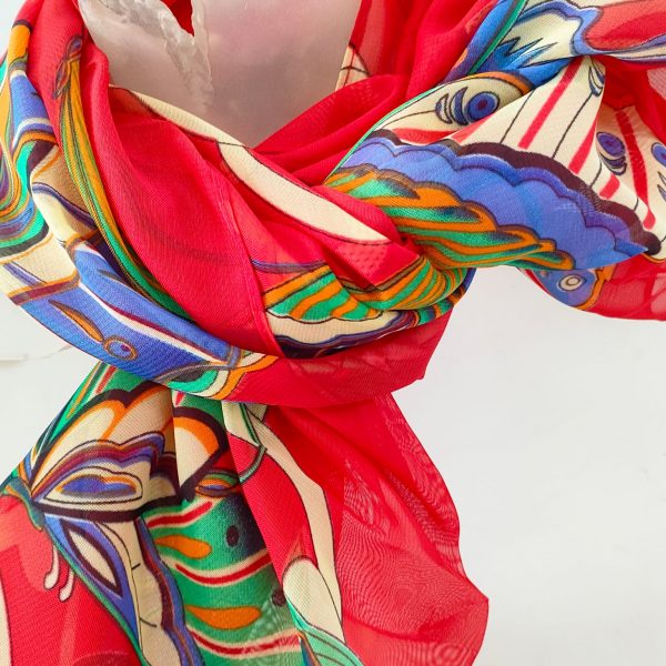 O lenço Papillon Pink com estampa abstrata de borboletas adiciona um toque vibrante e divertido a qualquer look.