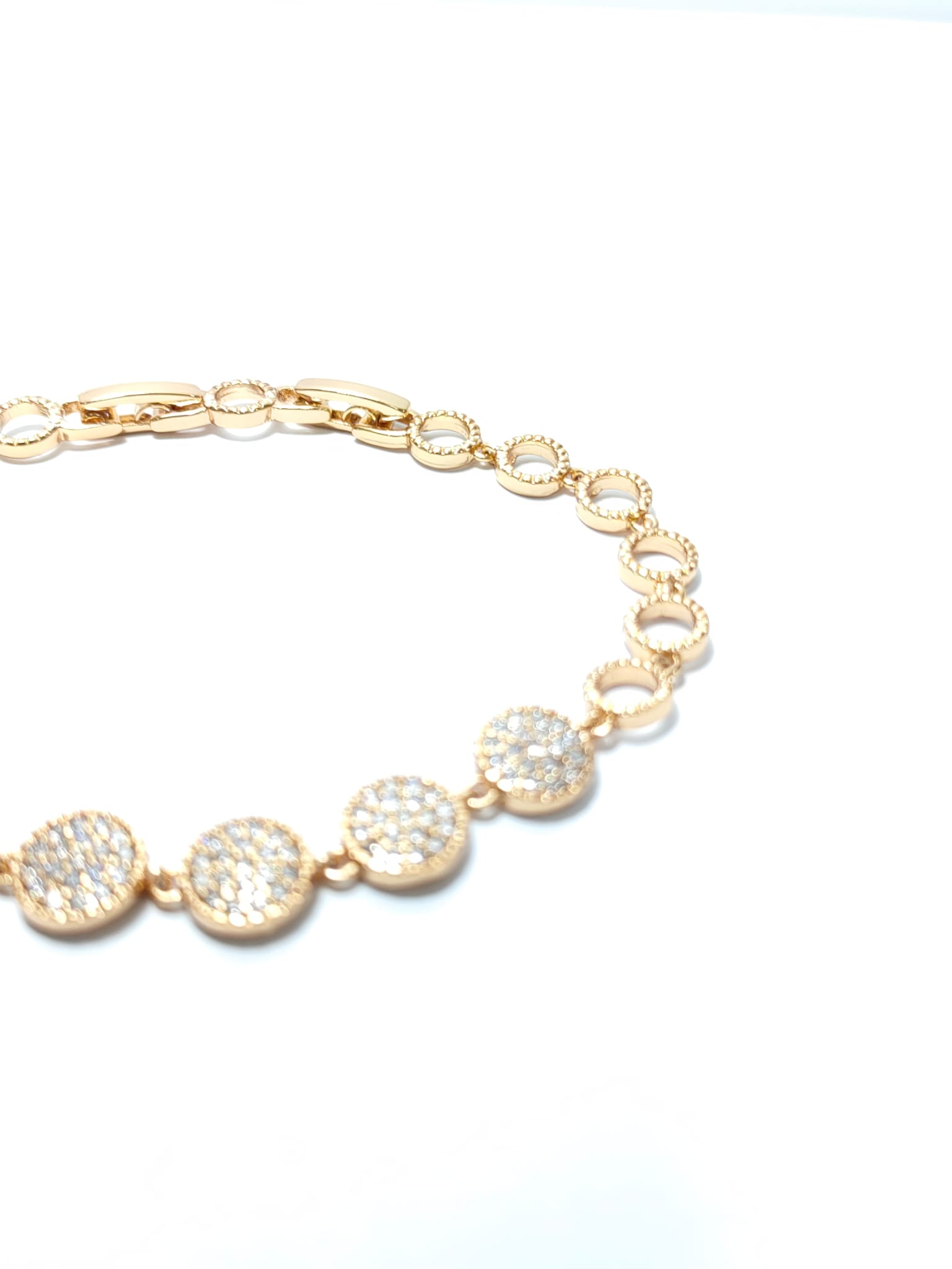 PULSEIRA C/ ZIRCONITAS EM CHAPADO A OURO