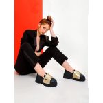 A faixa superior dourada remete a estรฉticas punk , rock ou gรณtica, mas de forma tรฃo original e sofisticada que faz parecer que o pรฉ estรก abraรงado por uma joia.